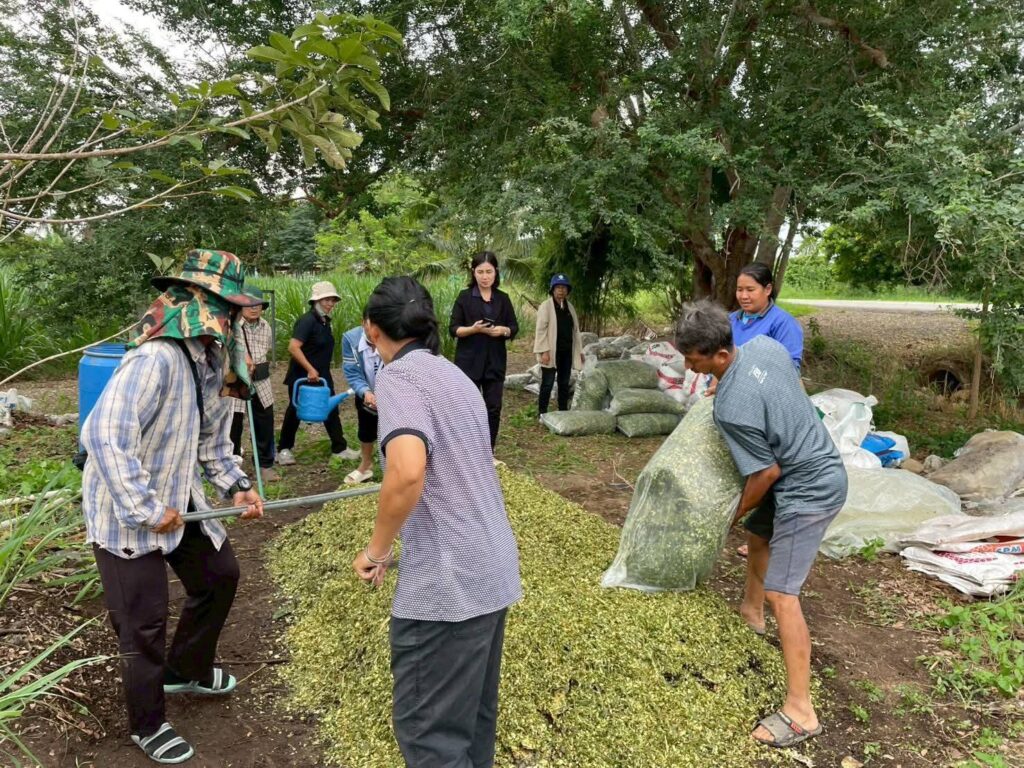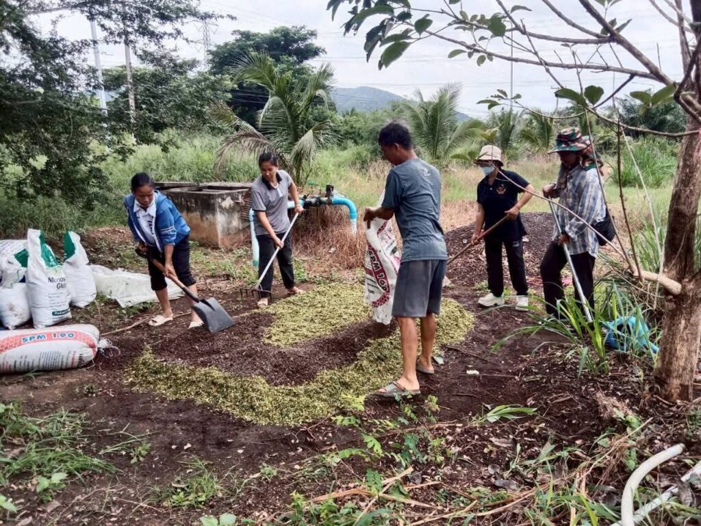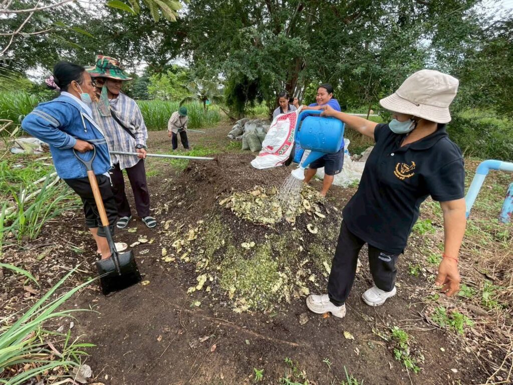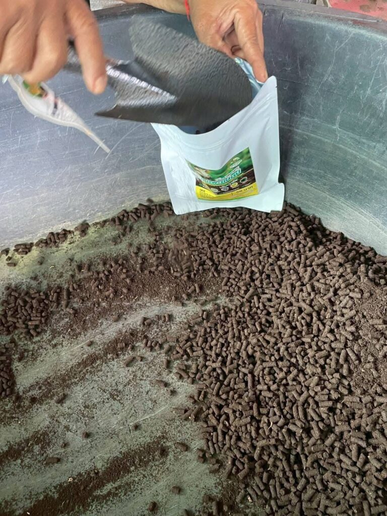 โดยวันนี้สมาชิกร่วมแรงร่วมใจช่วยกันทำ เพิ่มเติม มีวัตถุดิบคือ มูลแพะหญ้าเนเปียร์ ฉอบ เปลือกสับปะรด