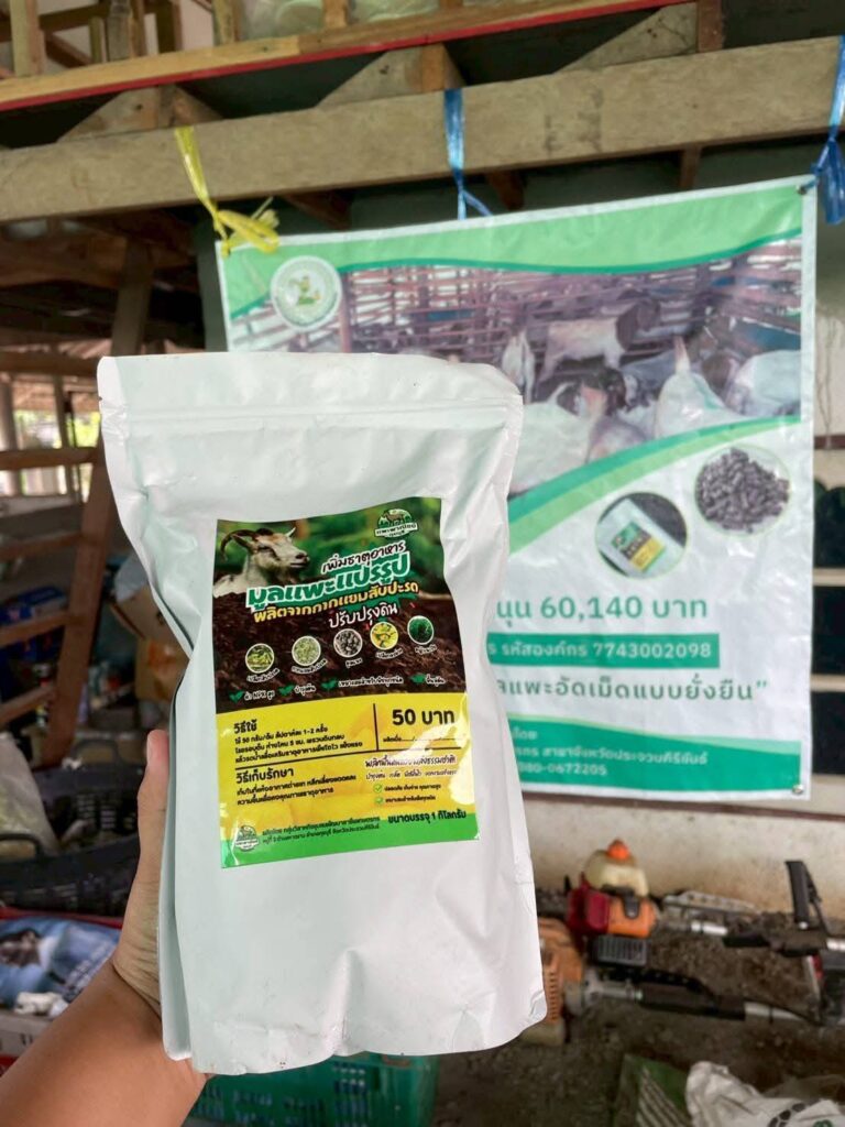 โดยกลุ่มเกาะสุพรรณการเกษตร ได้รับงบอุดหนุน จำนวน 60,140 บาท เพื่อทำโครงการ “แปรรูปปุ๋ยมูลแพะอัดเม็ดอย่างยั่งยืน”